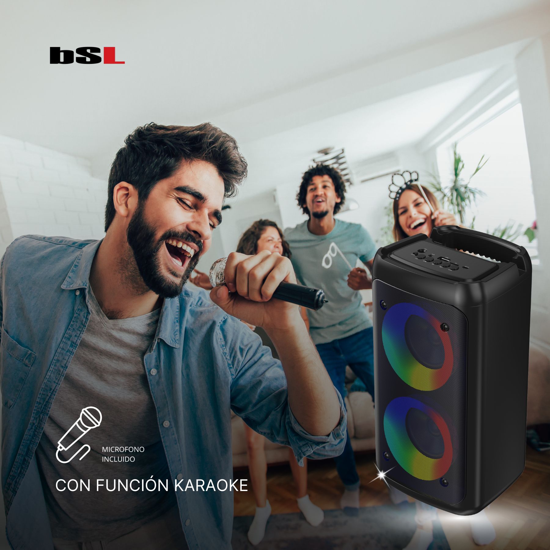 Su función estrella: Modo Karaoke con micrófono incluido, ideal para animar fiestas y eventos, tanto para adultos como niños. Gracias a su tamaño compacto (37 cm de alto, 18 cm de ancho, 16 cm de profundidad) es fácil de transportar y almacenar, pero con una presencia sonora sorprendente.